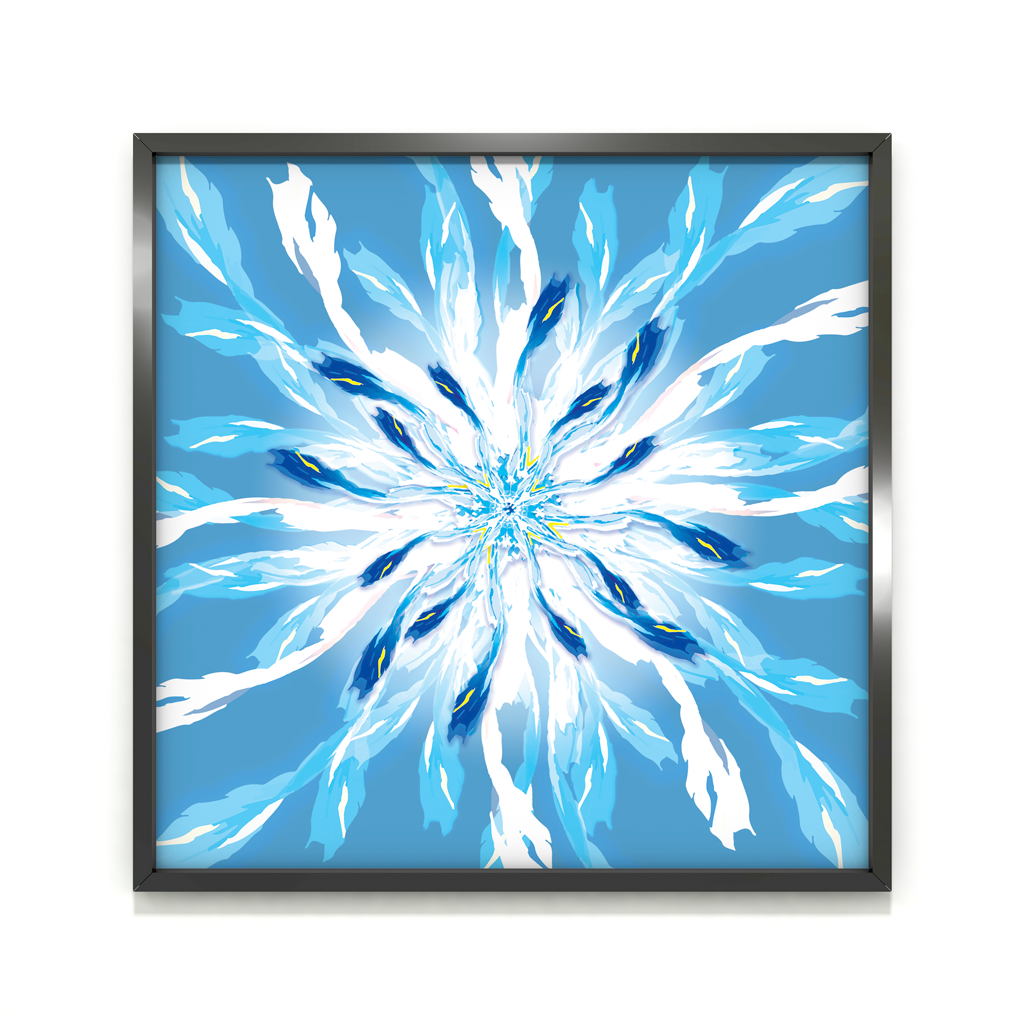 The concept of the paintings FLOWER OF THE FEATHER tells of the beauty and fluidity of floating feathers intertwining and creating a feeling of endless rotation.